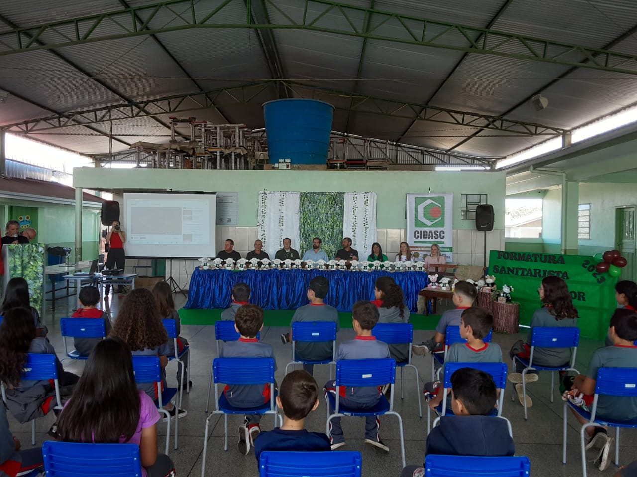 No dia 1º de dezembro a Companhia Integrada de Desenvolvimento Agrícola de Santa Catarina (Cidasc) realizou a formatura da primeira turma do Projeto Sanitarista Junior, realizada na Escola de Anos Iniciais Professora Ana Maria de Paula, em Matos Costa. O evento contou com a participação do prefeito, secretários municipais da educação e da agricultura, professores, equipe diretiva, pais e alunos, tornando-se uma ocasião memorável para todos os presentes.