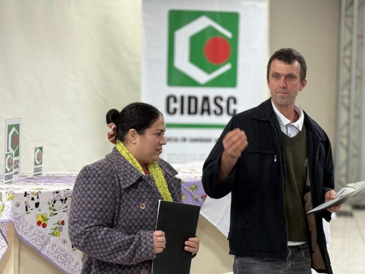 Mais uma agroindústria familiar recebeu o Selo ARTE para produtos lácteos. A solenidade de entrega de dois selos para o Lacticínios Três Irmãos, do município de Palmitos, ocorreu no dia 1° de julho, no auditório da Prefeitura Municipal, contando com a presença da prefeita de Palmitos, Giovana Giacomelli, e do gestor do Departamento Regional de Chapecó da Cidasc, Ivan Niederle Ulsenheimer.