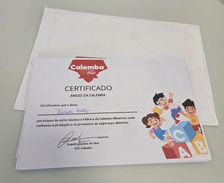 A empresa Calemba Alimentos, sediada em Santo Amaro da Imperatriz, apoiou a iniciativa e preparou uma recepção especial aos jovens, reforçando seu compromisso com a educação e a cidadania. Além da experiência prática, os alunos receberam certificados de participação.
