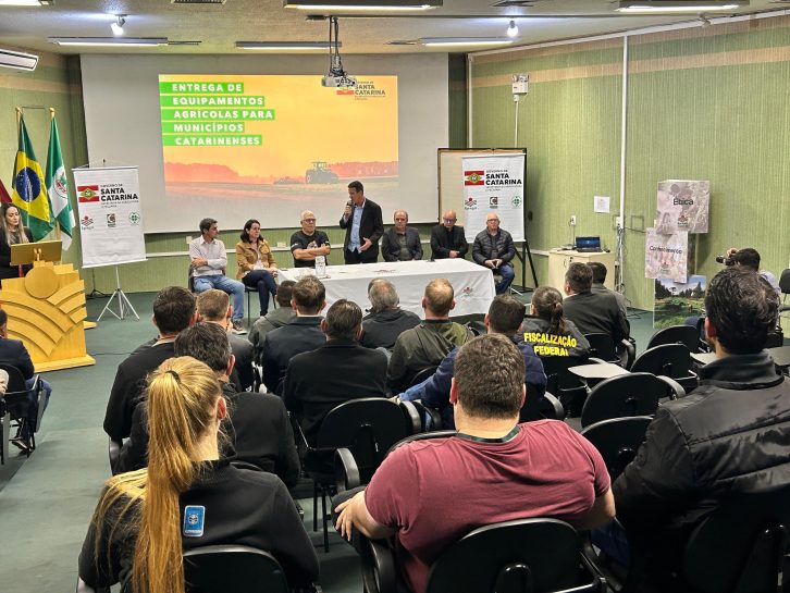 Mais 60 equipamentos agrícolas foram entregues nesta sexta-feira (17), para reforçar a produção rural em 31 municípios catarinenses. A ação foi realizada pelo Governo do Estado, por meio da Secretaria de Estado da Agricultura e Pecuária (Sape), na sede da Gerência Regional da Epagri em Chapecó. O investimento total ultrapassa R$ 1,7 milhão, com recursos provenientes de emendas parlamentares federais e estaduais, com a contrapartida do Estado de Santa Catarina.