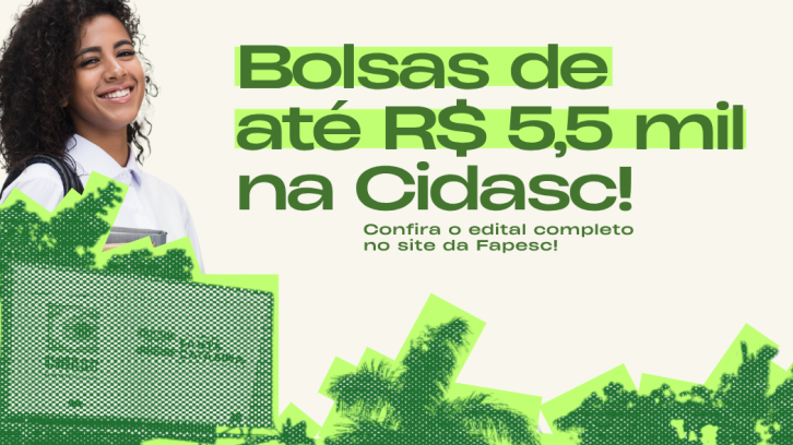 A Fundação de Amparo à Pesquisa e Inovação do Estado de Santa Catarina (Fapesc) está com inscrições abertas para o Edital de Chamada Pública n.º 62/2025, em parceria com a Companhia Integrada de Desenvolvimento Agrícola de Santa Catarina (Cidasc). O edital prevê a concessão de oito bolsas de pesquisa, destinadas a profissionais que irão atuar em projetos de Pesquisa, Desenvolvimento e Inovação (PDI), com foco na modernização da gestão, no aprimoramento tecnológico de processos e sistemas e no fortalecimento institucional da Cidasc na oferta de serviços de defesa agropecuária à sociedade catarinense.