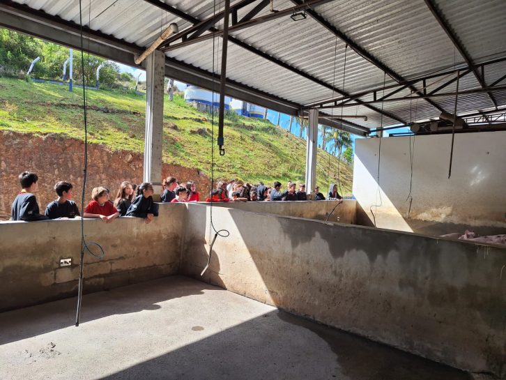 Após a parte teórica, os alunos realizaram uma visita técnica ao Frigorífico Friouro, localizado no município de Caçador, que atua sob o Serviço de Inspeção Estadual (SIE). No local, puderam observar na prática as etapas do abate e processamento de carnes, conhecendo a rotina de um estabelecimento que segue as normas de inspeção oficial do Estado.