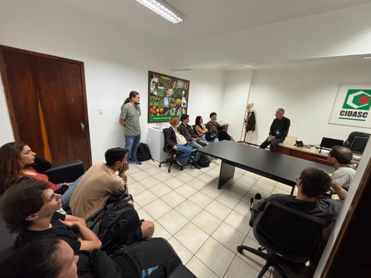 Alunos da primeira fase do curso de Agronomia da Universidade Federal de Santa Catarina (UFSC) realizaram, na tarde desta segunda-feira (03/11), uma visita técnica à Companhia Integrada de Desenvolvimento Agrícola de Santa Catarina (Cidasc). A atividade foi acompanhada pelo professor Tiago Montagna e teve como propósito aproximar os estudantes da realidade profissional, apresentando a importância e a abrangência do trabalho desenvolvido pela empresa em suas diferentes áreas de atuação.