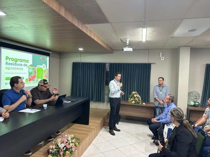 No auditório da Ceasa-SC, em São José, Geovani apresentou o Programa de Monitoramento de Resíduos de Agrotóxicos da Cidasc aos participantes. A iniciativa é referência estadual na fiscalização e no controle do uso de agrotóxicos em produtos vegetais, garantindo mais segurança dos produtos de origem vegetal e proteção à saúde do consumidor, do trabalhador rural e ao meio ambiente.