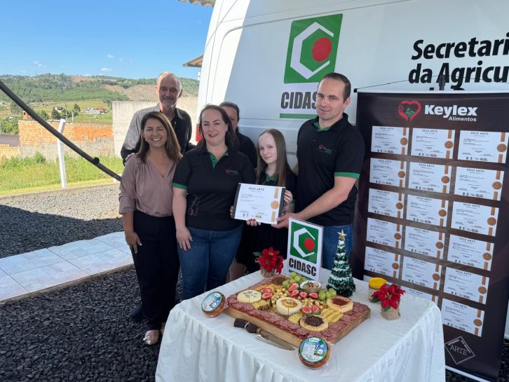 Em uma tarde marcada por celebração, reconhecimento e fortalecimento da produção artesanal catarinense, a queijaria Keylex recebeu oficialmente o Selo ARTE para o Queijo Fresco Defumado. Com este certificado, a empresa atinge a marca de vinte produtos com o selo, criado pelo Ministério da Agricultura e Pecuária (Mapa) e concedido pela Companhia Integrada de Desenvolvimento Agrícola de Santa Catarina (Cidasc) no estado.