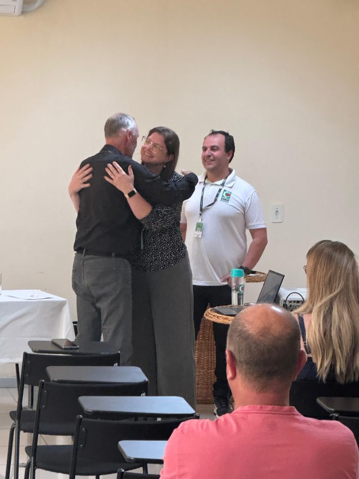 Entre as atividades realizadas na sede da regional de São Joaquim, um dos destaques foi a homenagem a colaboradores que completaram ciclos de 5 a 40 anos de trabalho na empresa. A médica-veterinária Heloísa Melo Alves, que atua também nas atividades de educação sanitária, recebeu o pin e o cordão comemorativo pelos cinco anos de casa. O técnico agrícola José Vieira Machado, que trabalha na Unidade Veterinária Local de Bom Jardim da Serra, totalizou 43 anos de dedicação à defesa agropecuária catarinense.