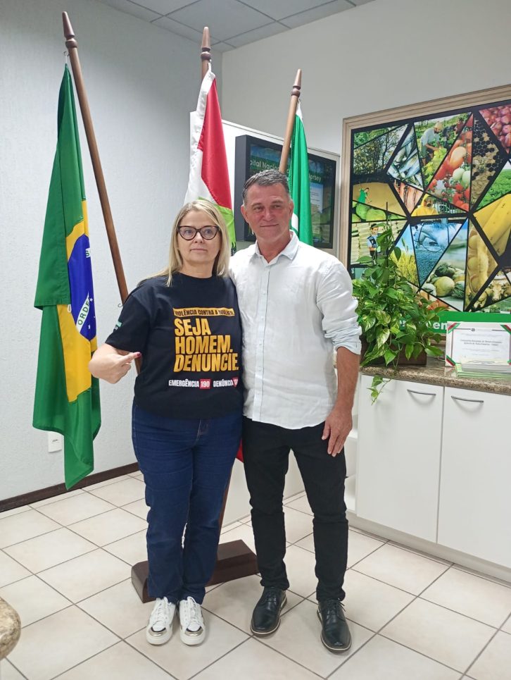 A presidente Celles Regina de Matos recebeu o prefeito Bachmann vestindo a camiseta da campanha “Violência contra a mulher. Seja homem, denuncie”, do Governo de Santa Catarina. O objetivo é engajar o público masculino para que não compactue com a violência sofrida pelas mulheres e denuncie os casos dos quais tiver conhecimento. Os servidores públicos e empregados de empresas públicas estaduais, como a Cidasc, também serão motivados a tomar parte nesta ação de responsabilidade social.
