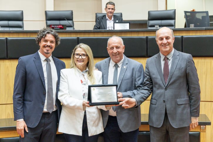 Na ocasião, a presidente da Cidasc, Celles Regina de Matos, recebeu a homenagem em nome da instituição, reconhecida por sua atuação na defesa agropecuária, na fiscalização e no apoio ao desenvolvimento do setor produtivo catarinense, em parceria com a Epagri e demais órgãos do Governo do Estado.