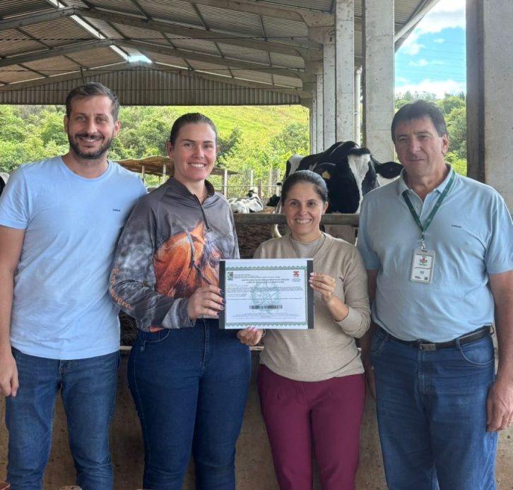 Participaram da entrega o médico-veterinário da Cidasc, Felipe Volpato, e o gestor do Departamento Regional de Caçador, médico-veterinário Luís Felipe Sperry Bratti, que destacaram a importância da certificação como ferramenta de valorização da produção leiteira e de proteção à saúde pública.